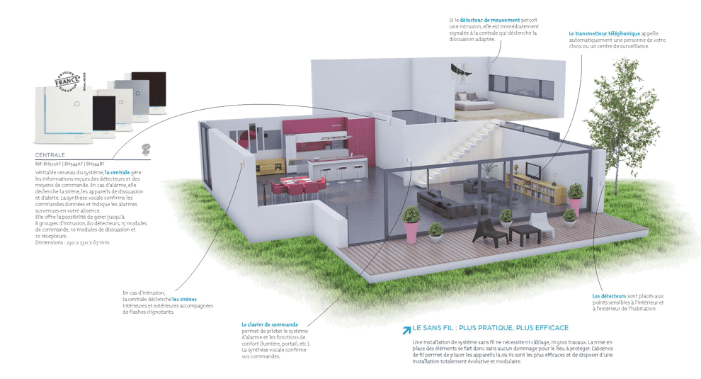 Vous pouvez compléter votre installation avec un système de vidéoprotection, un contrat de télésurveillance et un générateur de brouillard (appareil à fumée).